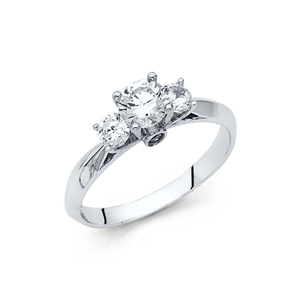 Wholesale 14K White Gold Polished Clear CZ Engagement Ring Weight-2.6grams, Width-1.5mm
