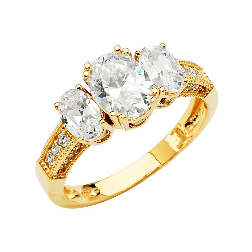Wholesale 14K Yellow Gold CZ Round Engagement Ring Weight-3.78grams