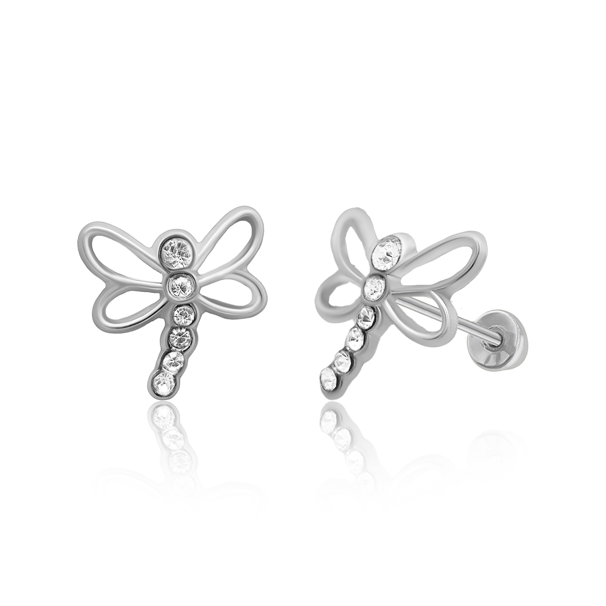 Sterling Silver Rhodium Plated Dragonfly Screw back Earring