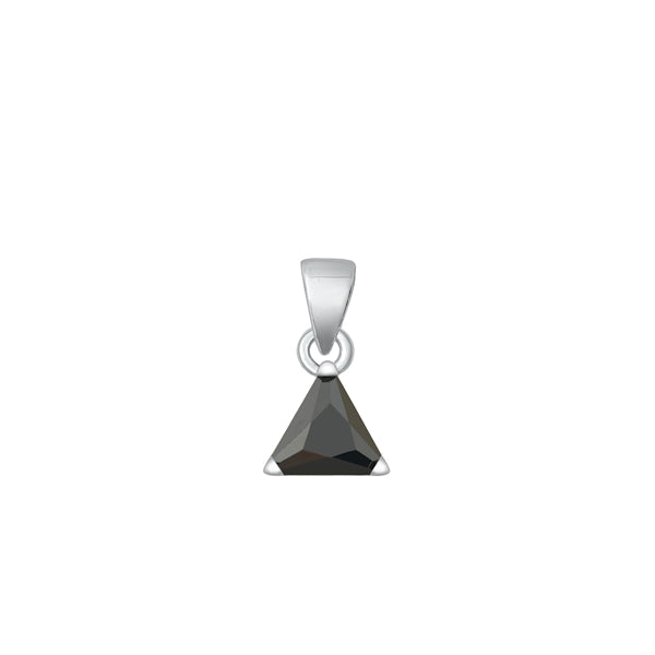 Wholesale Sterling Silver Rhodium Plated Triangle Black Solitaire CZ Pendant Face Height-6mm