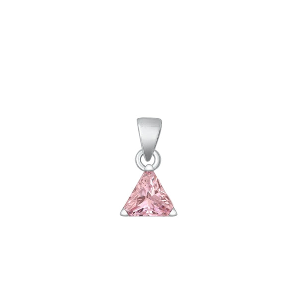 Wholesale Sterling Silver Rhodium Plated Triangle Pink Solitaire CZ Pendant Face Height-6mm