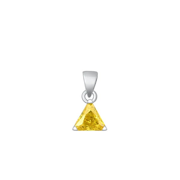 Sterling Silver Rhodium Plated Triangle Yellow Solitaire CZ Pendant Face Height-6mm