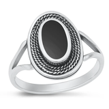 Sterling Silver Oxidized Spiral Oval Black Agate Stone Ring