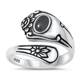 Sterling Silver Oxidized Spoon Black Agate Stone Ring