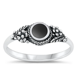 Sterling Silver Round And Flower Black Agate Stone Ring