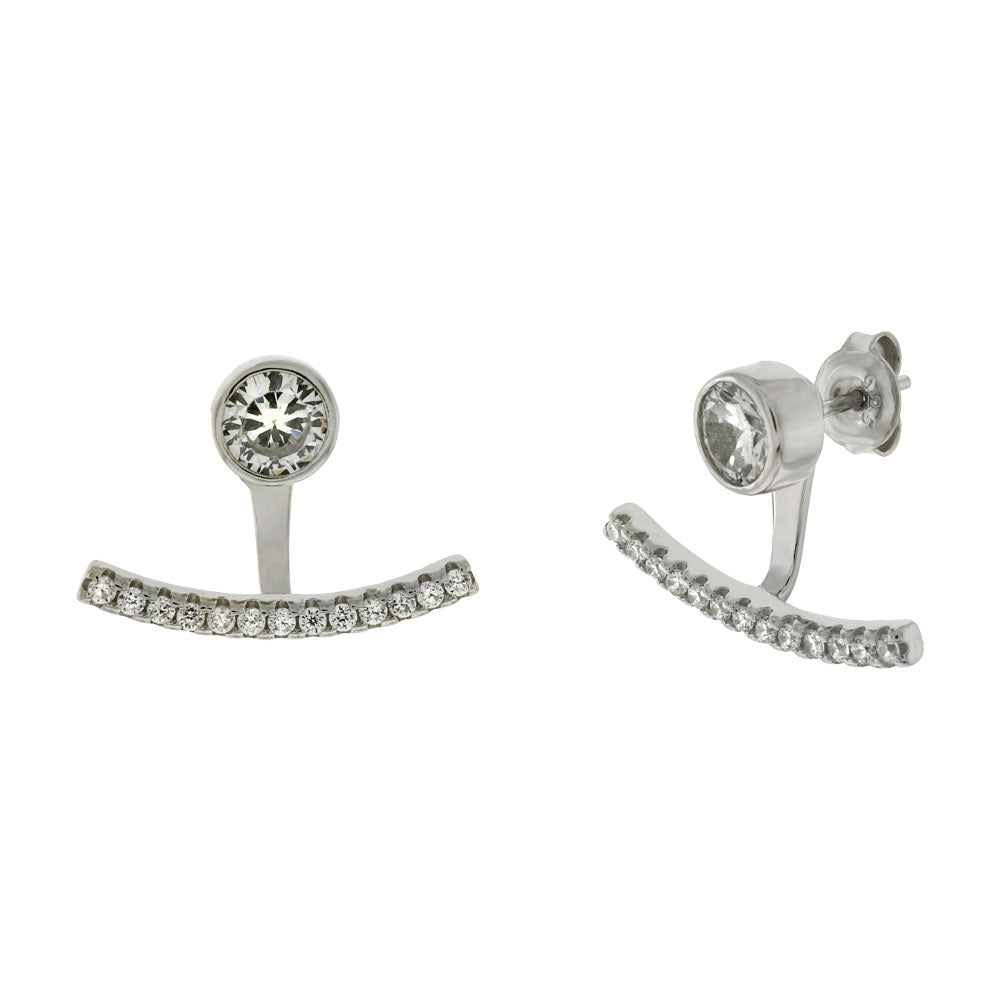 Wholesale Sterling Silver Bezel-Set 6mm Round CZ Ear Jacket Earrings