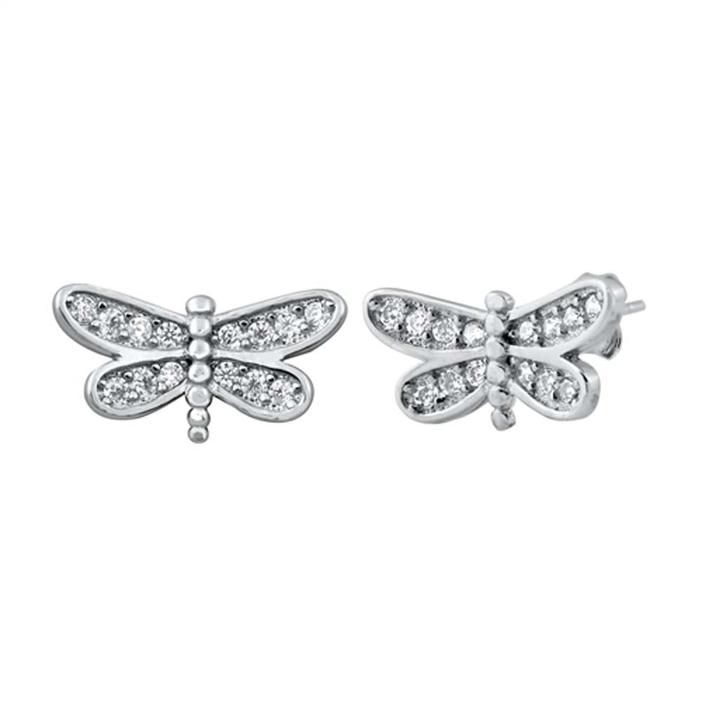 Sterling Silver Clear CZ Dragonfly Assorted CZ Earrings