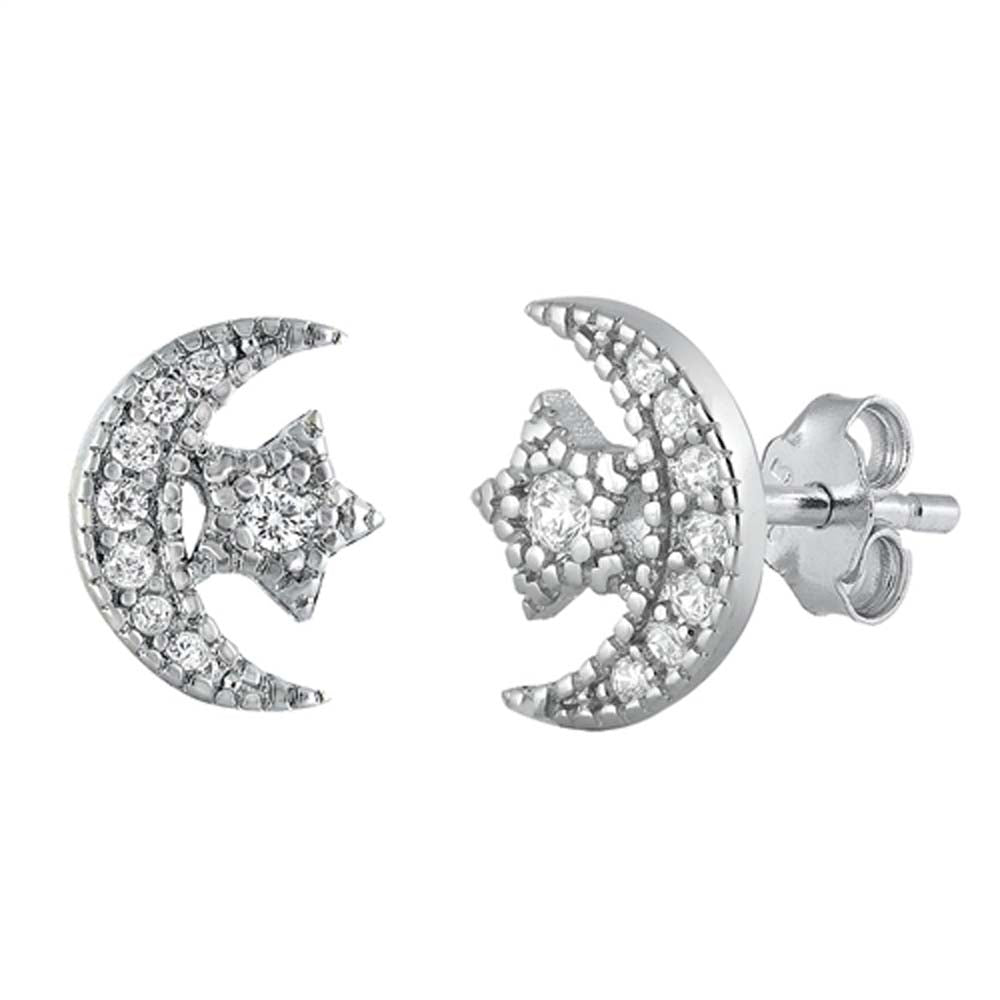 Sterling Silver Clear CZ Moon & Star Assorted CZ Earrings