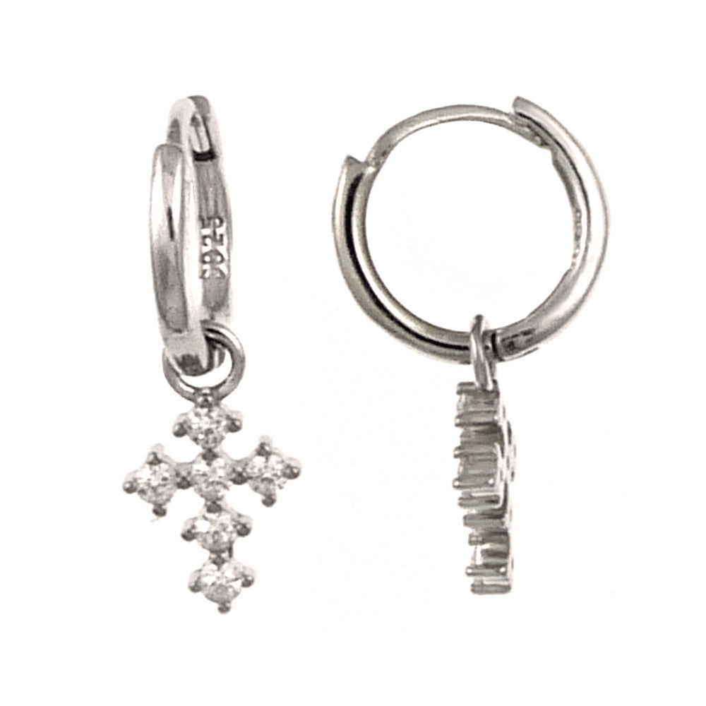 Wholesale Sterling Silver CZ Cross With Huggie Rhodium Hoop Earrings