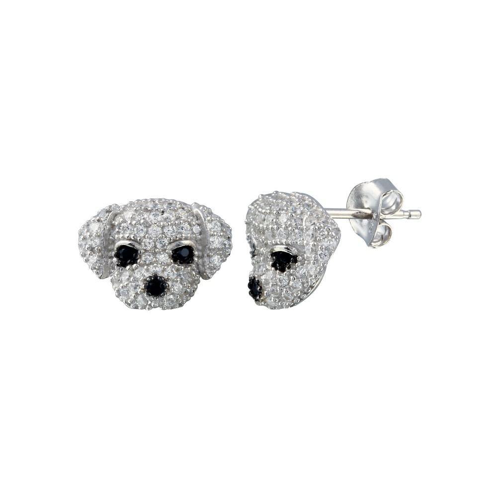 Wholesale Sterling Silver Gold Plated CZ Puppy Stud Earrings