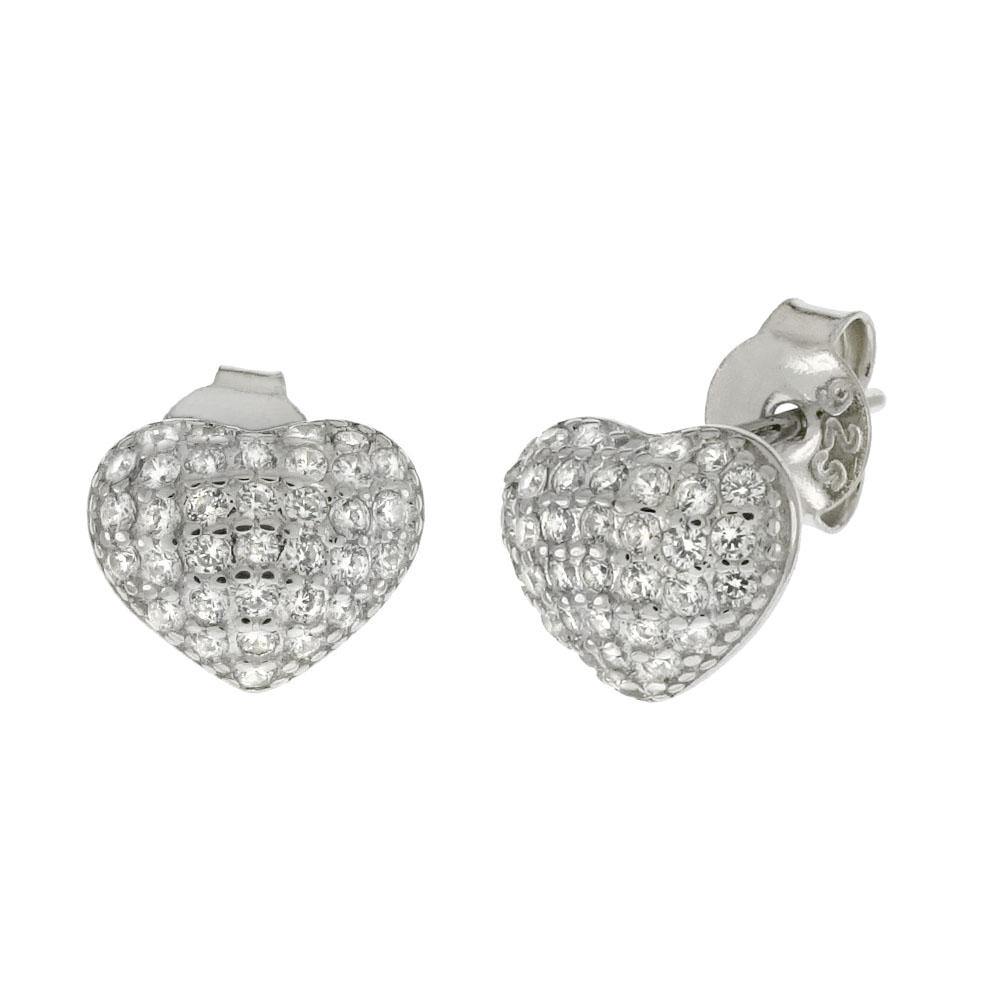 Sterling Silver Heart Micro Pave Cubic Zirconia Stud Earrings