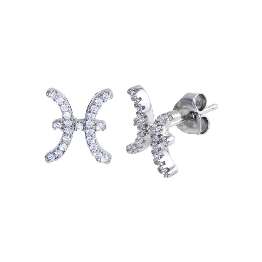 Sterling Silver Platinum Plated Pisces CZ Zodiac Sign Earrings