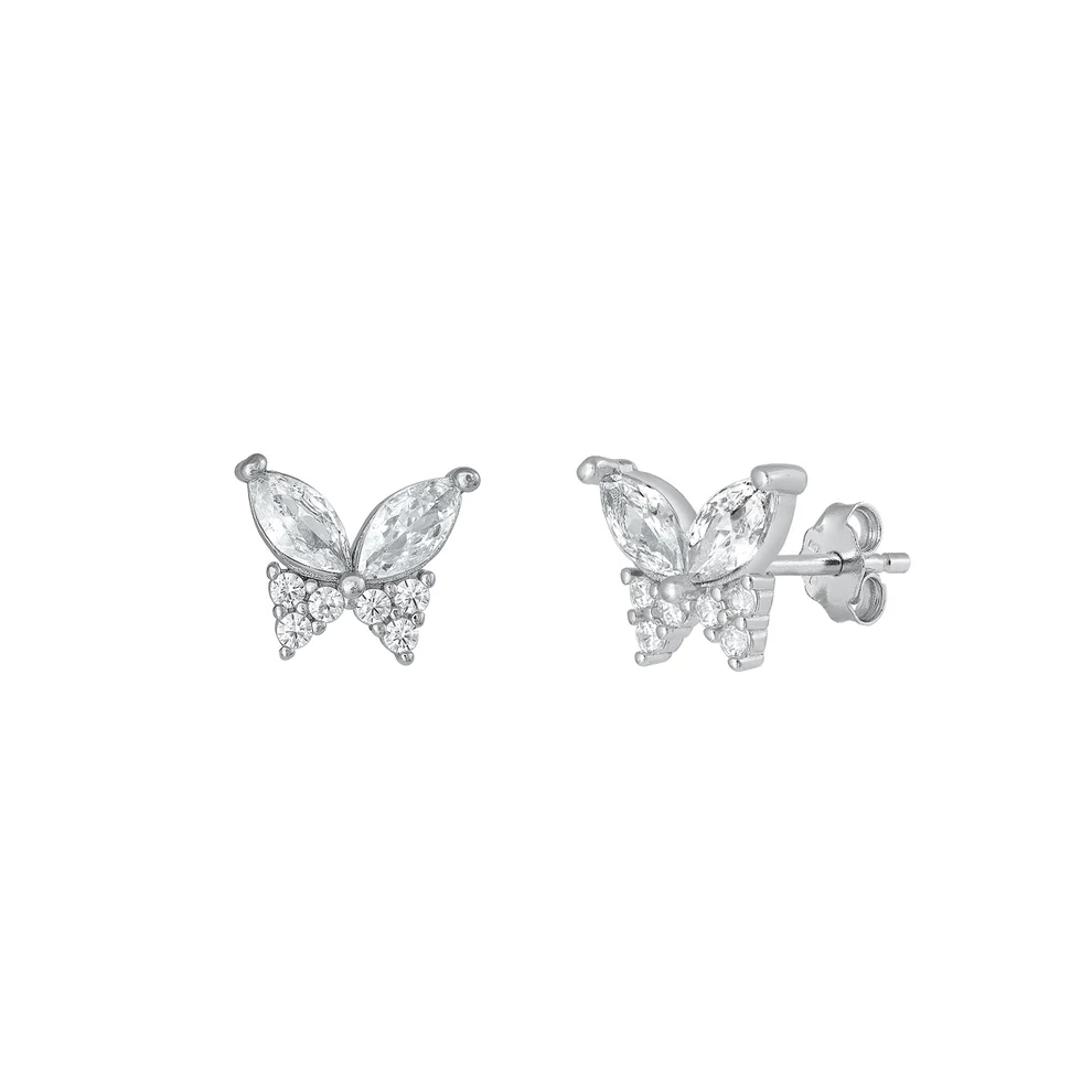 Wholesale Sterling Silver Rhodium Plated Butterfly Clear CZ Earrings Face Height-8.7mm