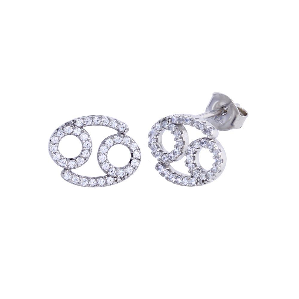 Wholesale Sterling Silver Rhodium Plated Cancer CZ Zodiac Sign Earrings