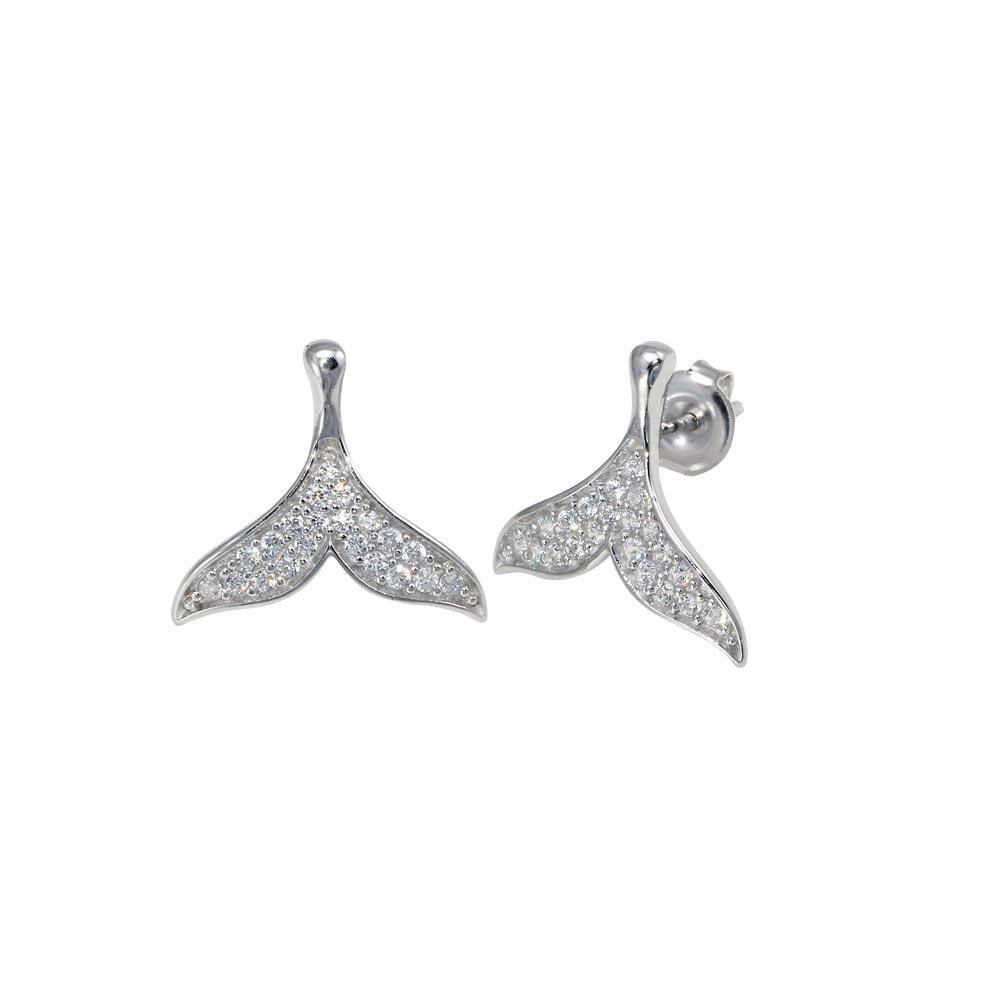 Wholesale Sterling Silver Rhodium Plated CZ Whale Tail Stud Earrings