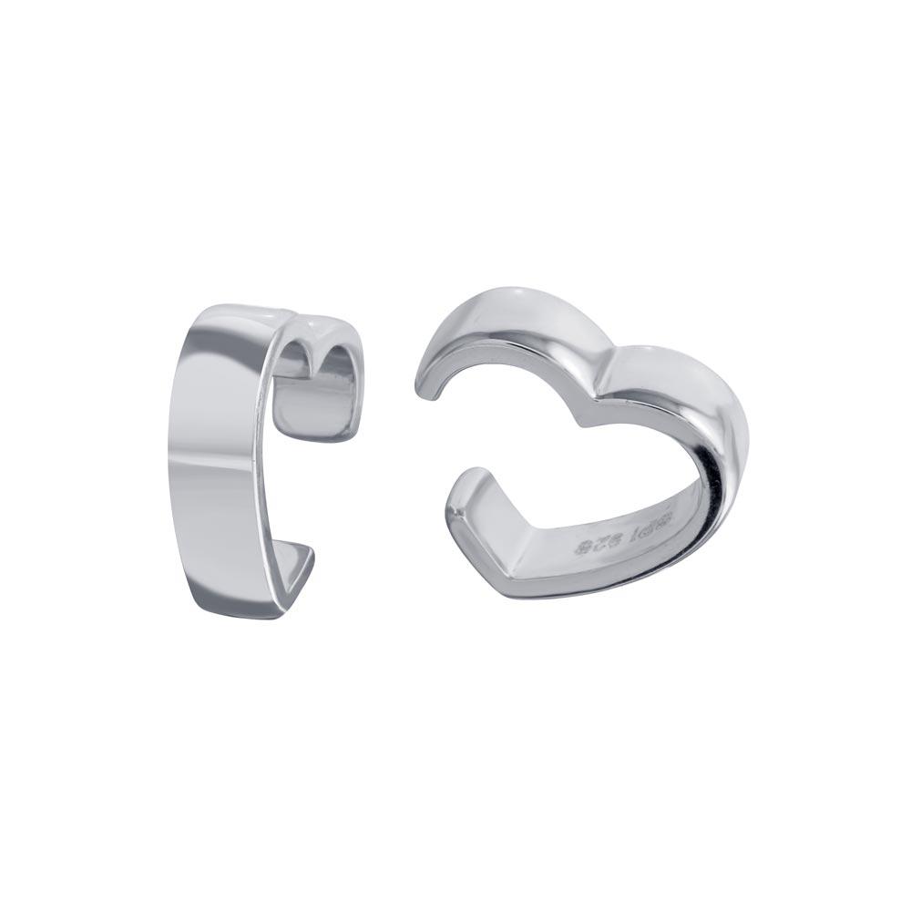 Sterling Silver Rhodium Plated Heart Cuff Earrings