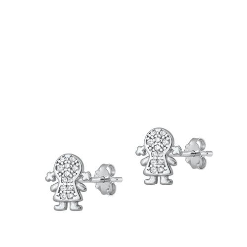 Sterling Silver Rhodium Plated Little Girl Stud Earrings
