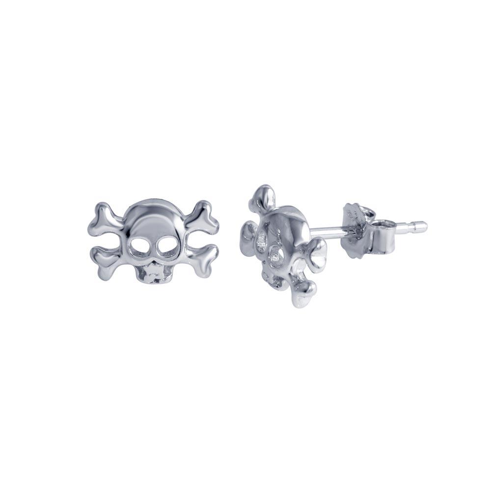 Wholesale Sterling Silver Rhodium Plated Skull Crossbones Stud Earrings
