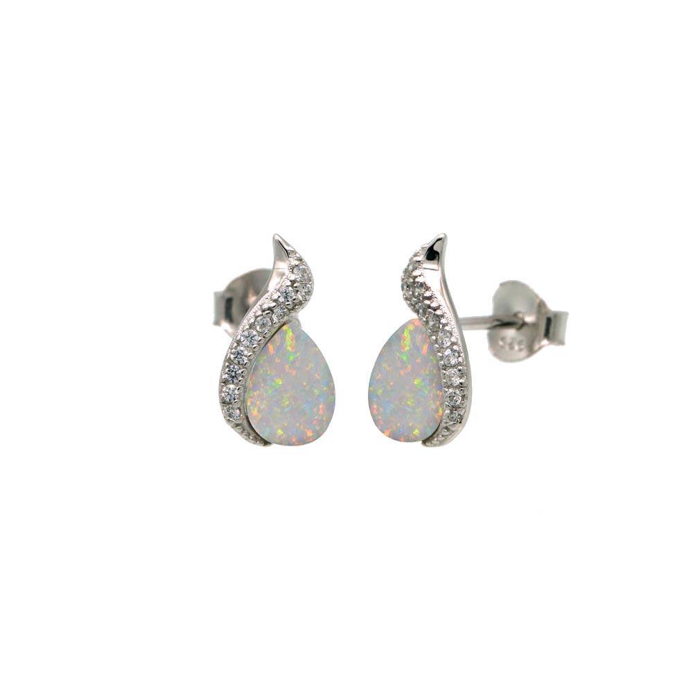 Wholesale Sterling Silver Rhodium Plated Teardrop Synthetic Opal CZ Stud Earrings