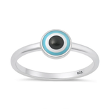 Sterling Silver Polished 6.4mm Enamel Evil Eye Ring