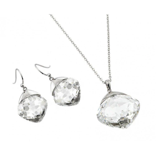 Wholesale Sterling Silver Rhodium Plated Clear Diamond Shaped Clear CZ Hook Earring And Necklace Set