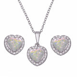 Wholesale Sterling Silver Rhodium Plated Halo Heart With Synthetic Opal And Clear CZ Earring And Necklace Set Pendant Dimensions-9mmx16mm, Earring Dimensions-8mmx8mm, Length-16+2inches