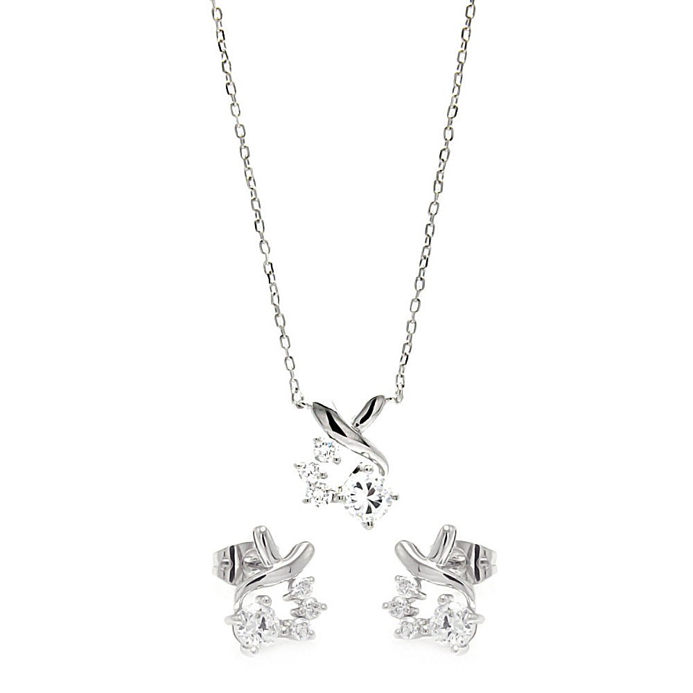 Wholesale Sterling Silver Rhodium Plated Individual Clear Twist Wrap CZ Stud Earring and Necklace Set