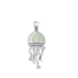 Wholesale Sterling Silver White Lab Opal And Clear CZ Jellyfish Pendant Pendant Height-24mm