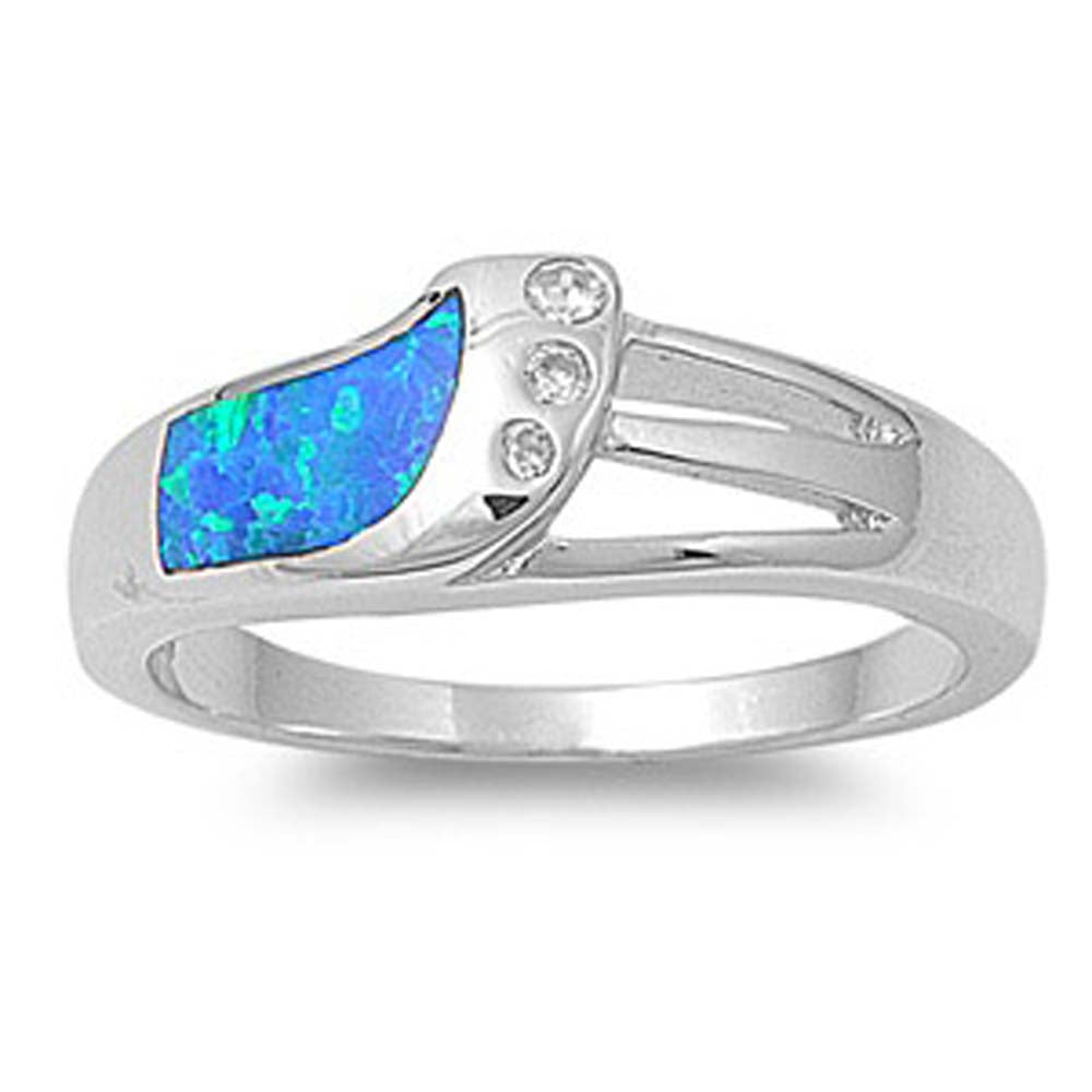 Sterling Silver Blue Lab Opal Inlay with Clear CZ Fancy Band RingAnd Face Height of 7MM