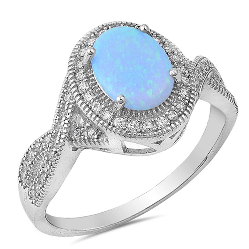 Sterling Silver Blue Lab Opal Stone with Clear CZ RingAnd Face Height of 13 mm
