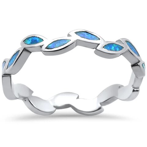 Wholesale Sterling Silver Blue Opal Leaf Design Ring