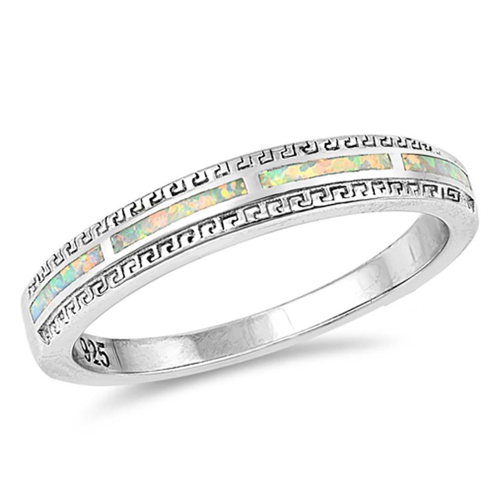 Sterling Silver Eternity White Lab Opal Ring