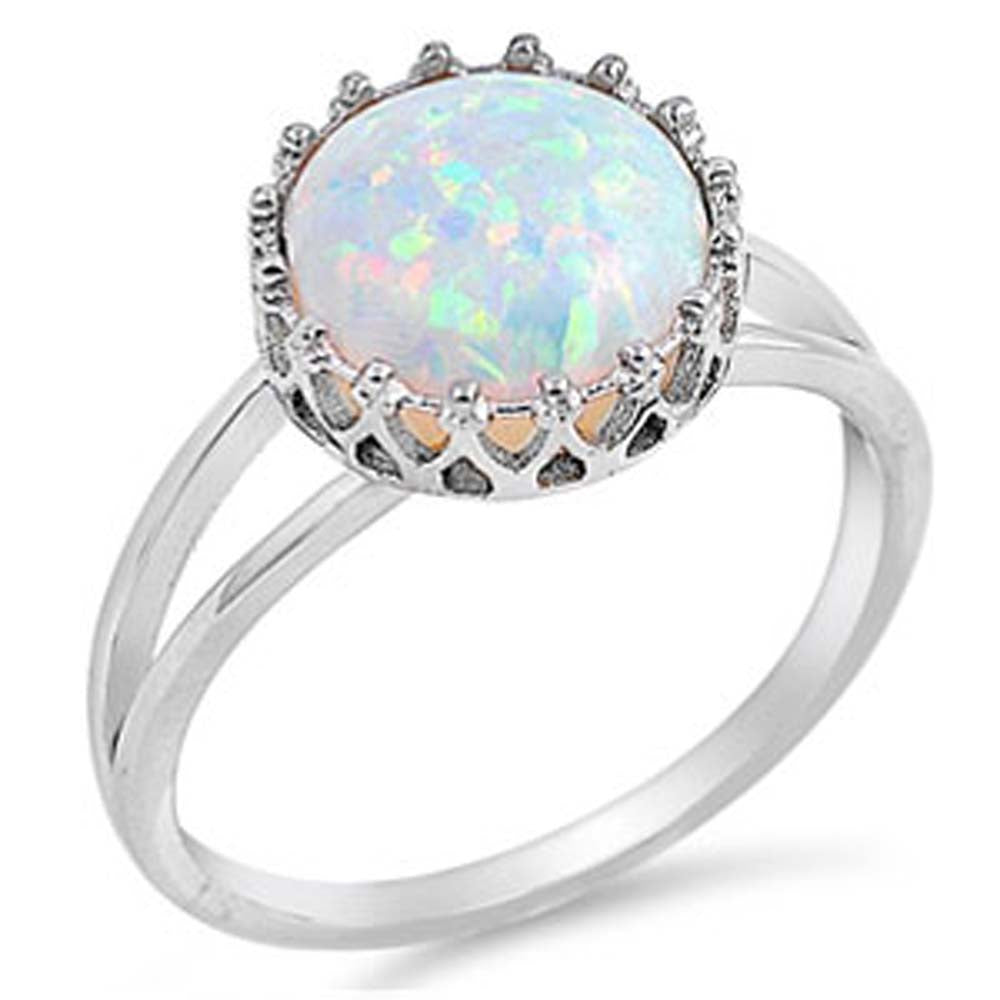 Sterling Silver Fancy Pronged Round Cut White Lab Opal Ring with Face Height of 12MM