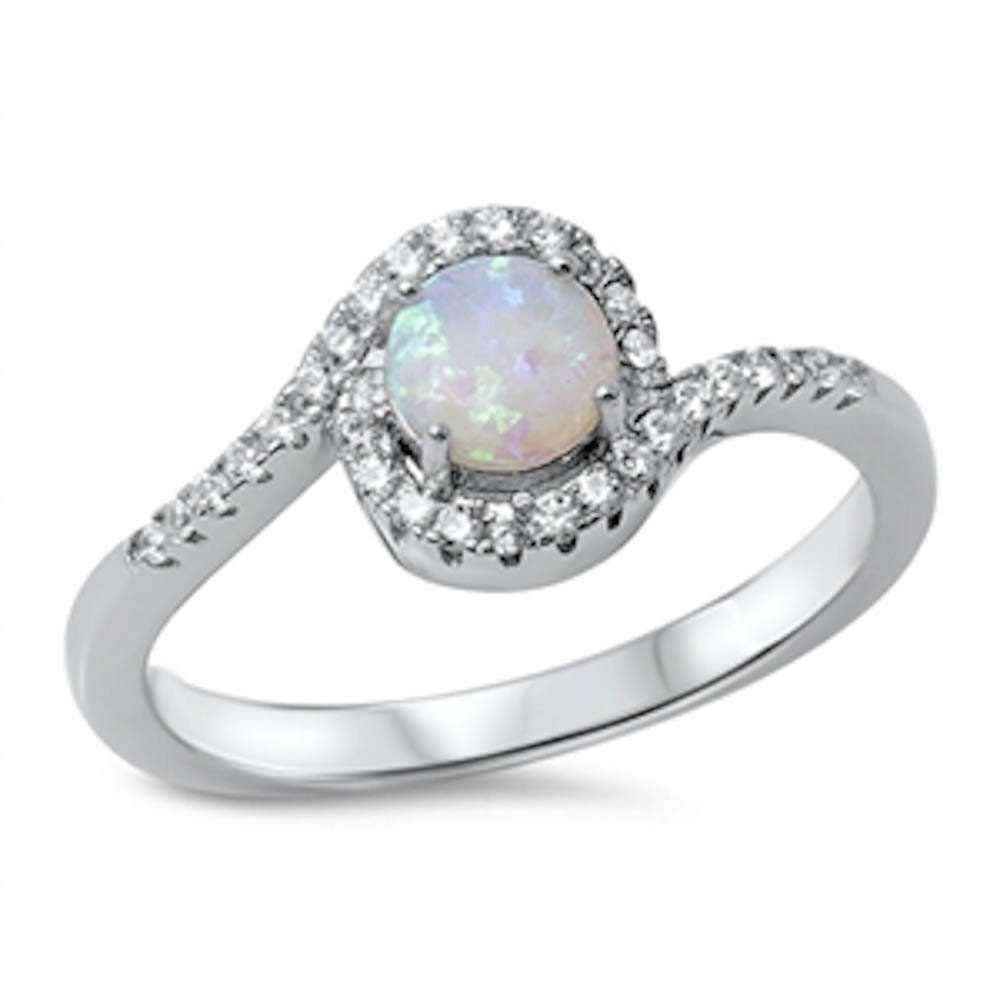 Sterling Silver Halo White Opal and Cubic Zirconia Ring With CZ StonesAndWidth 9mm