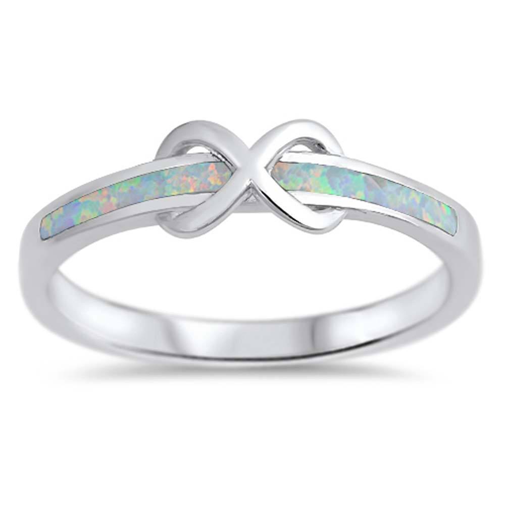 Sterling Silver Infinity White Lab Opal RingsAnd Face Height 5mm
