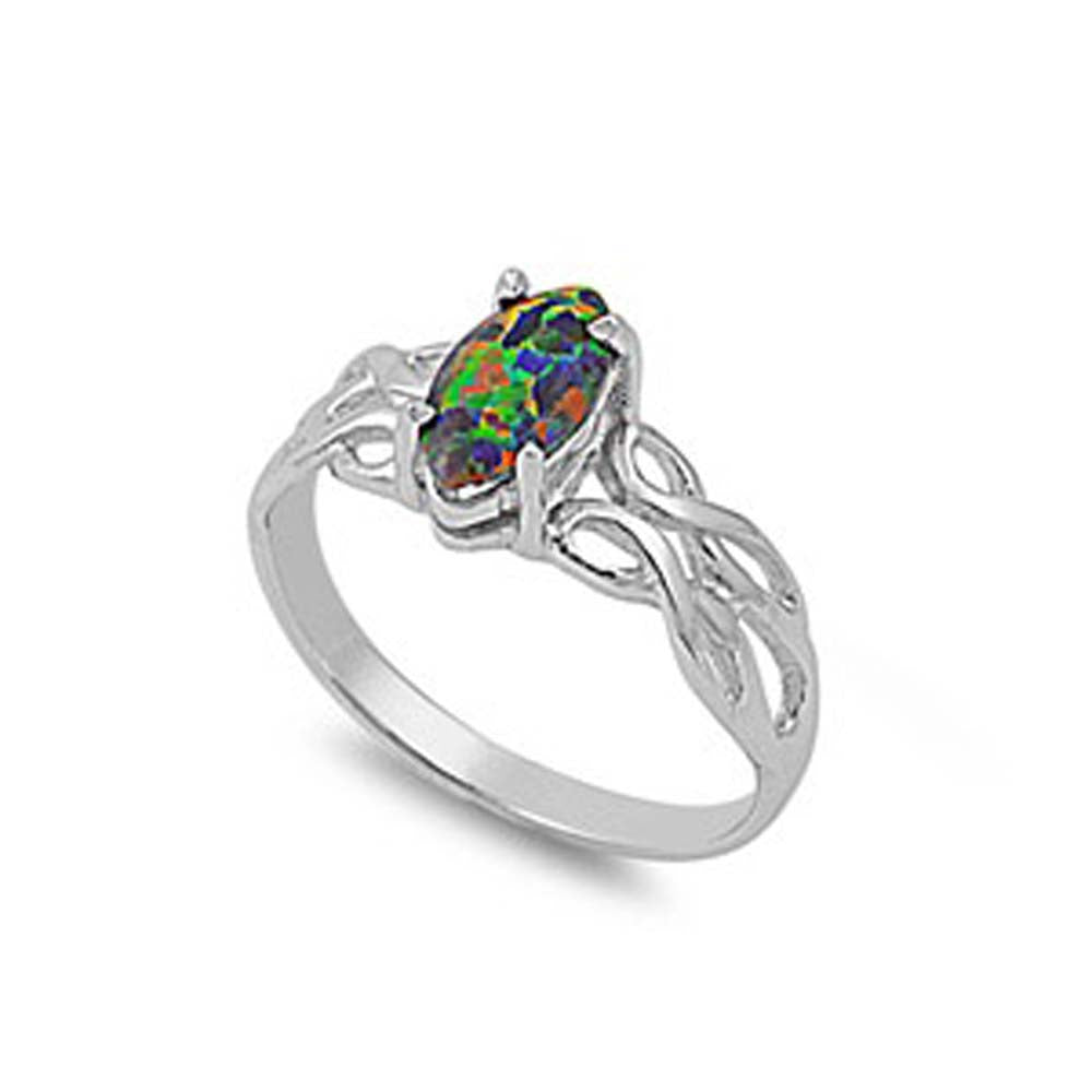 Sterling Silver Modish Black Lab Opal Marquise Cut with Celtic Knot Inlay Band RingAnd Face Height of 9MM