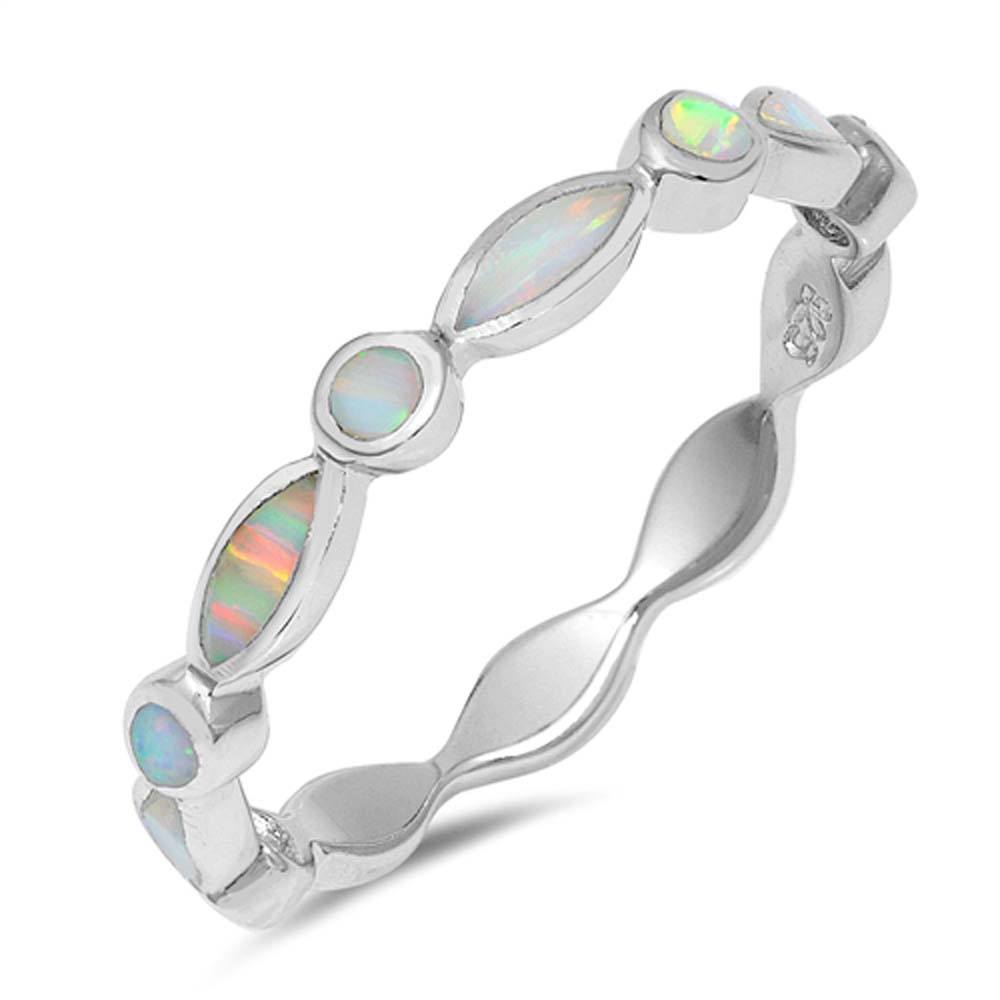 Sterling Silver Oval And Round Shape White Lab Opal RingsAnd Face Height 3mm