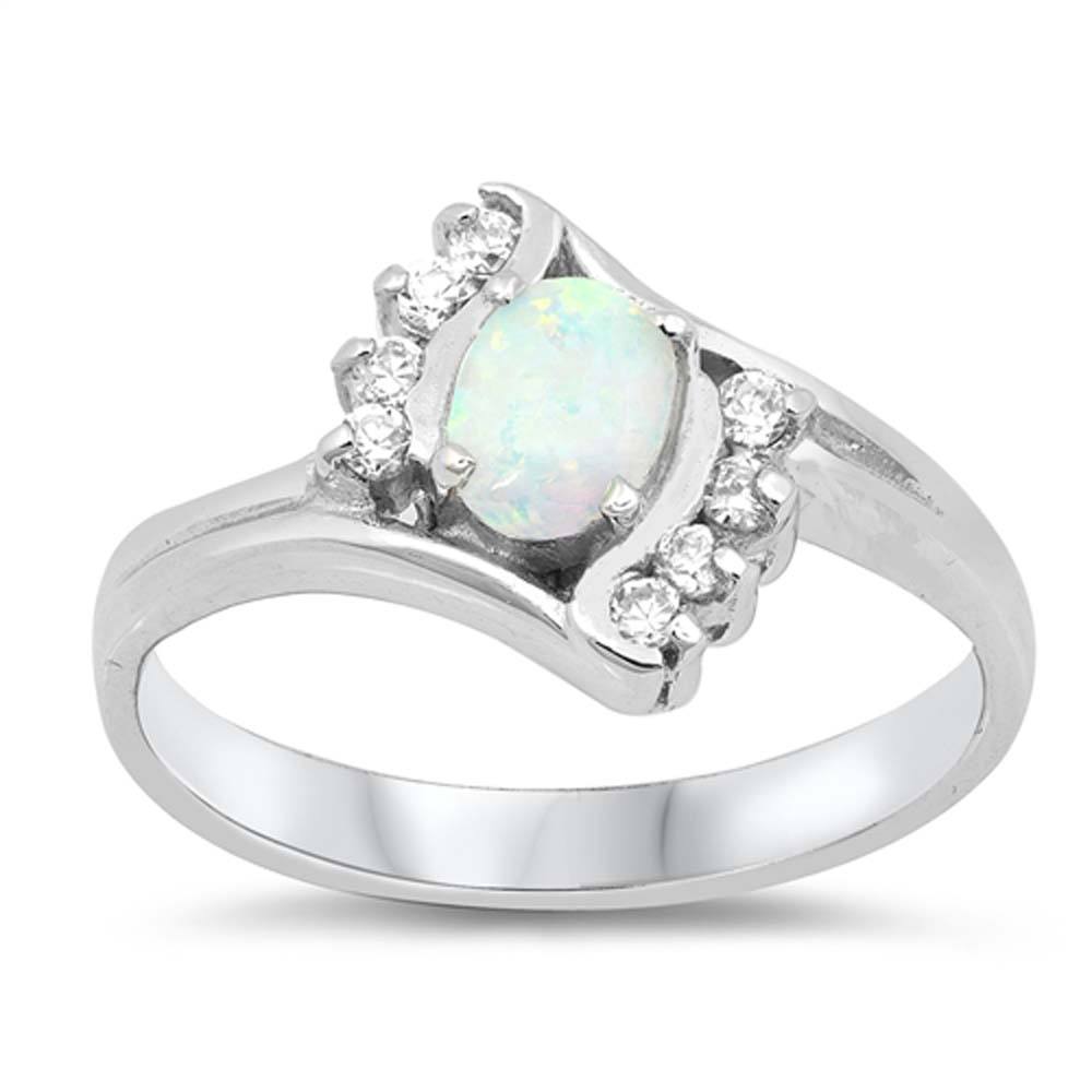 Sterling Silver Oval Shape White Lab Opal Rings With CZ StonesAnd Face Height 13mm