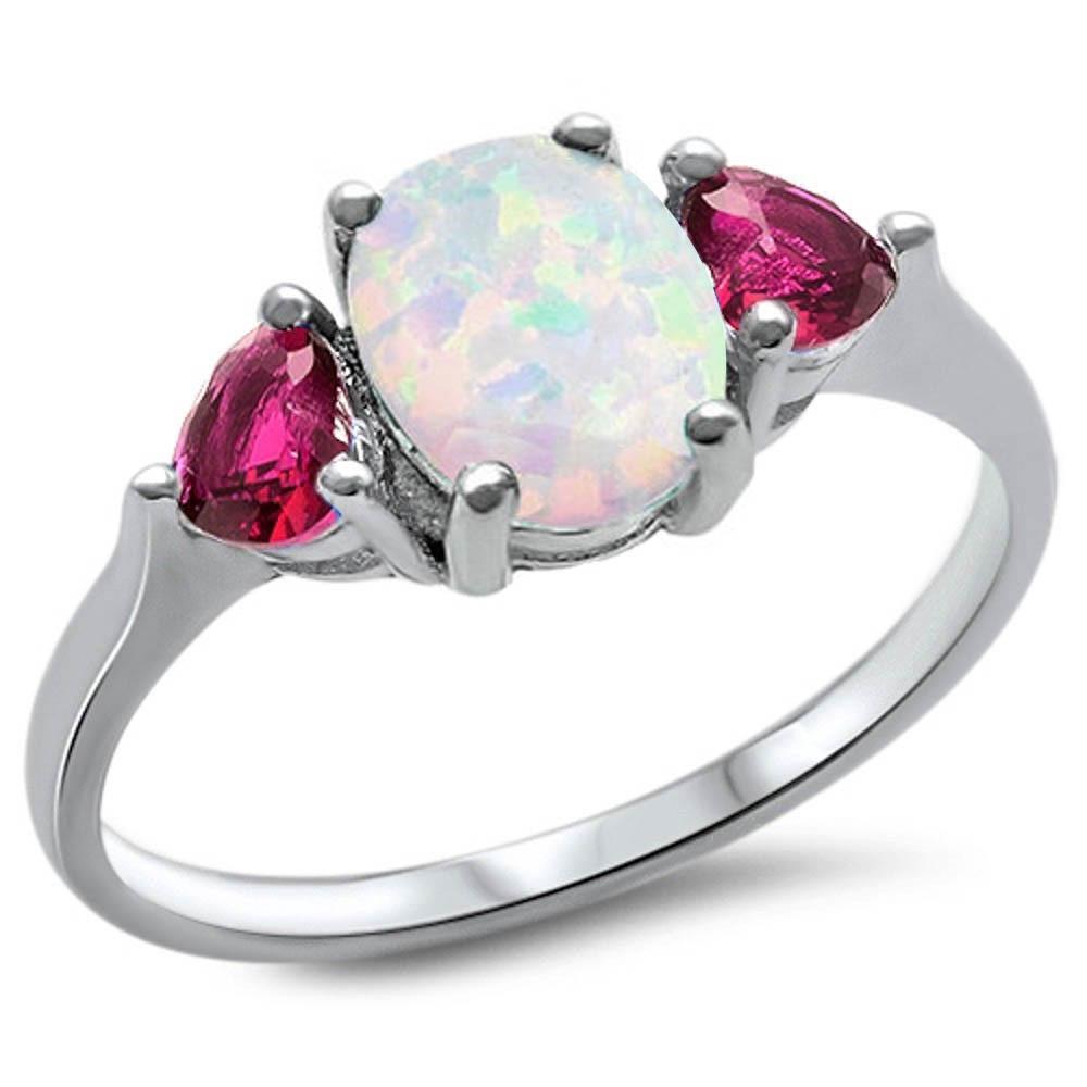 Wholesale Sterling Silver Oval White Opal & Ruby Heart Ring with CZ stoneAndWidth 8mm