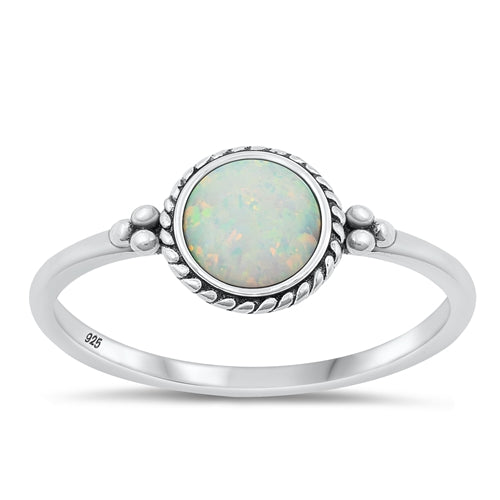 Sterling Silver Oxidized White Lab Opal Ring-8mm
