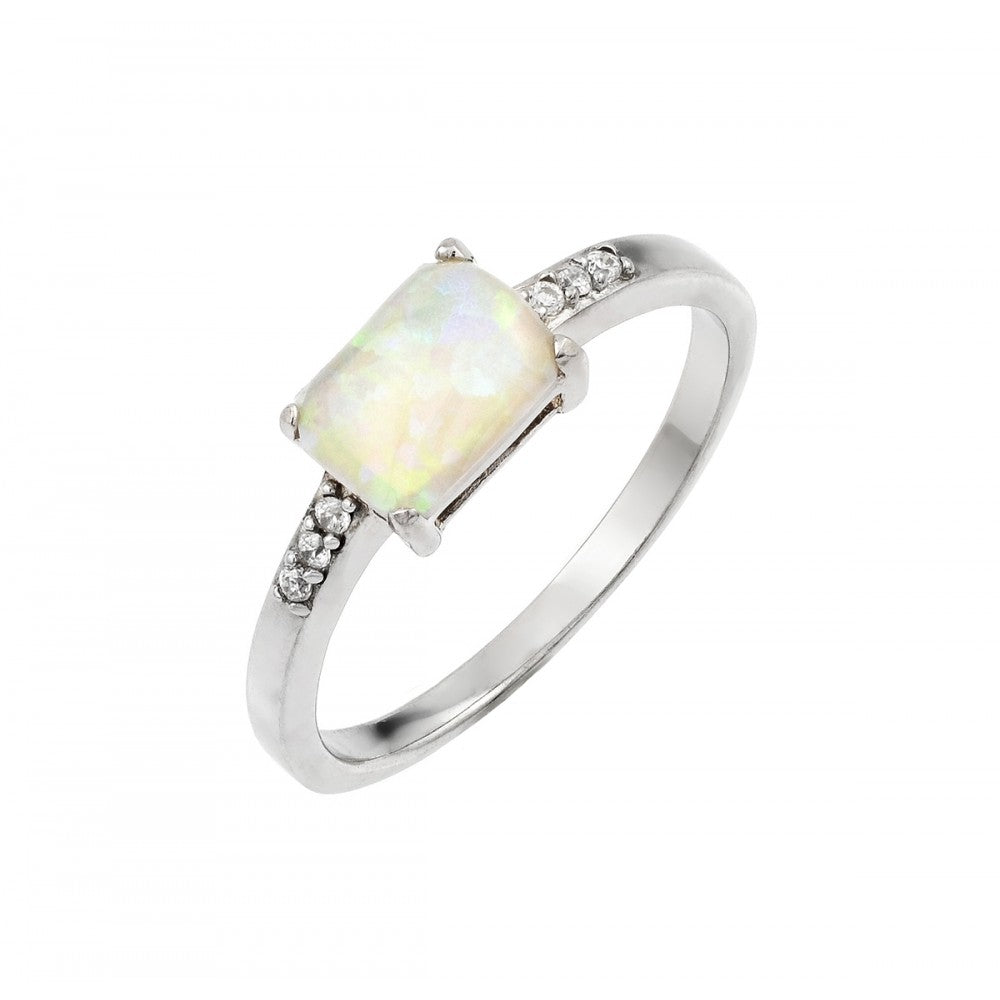Wholesale Sterling Silver Rhodium Plated Clear CZ Baguette Opal Ring