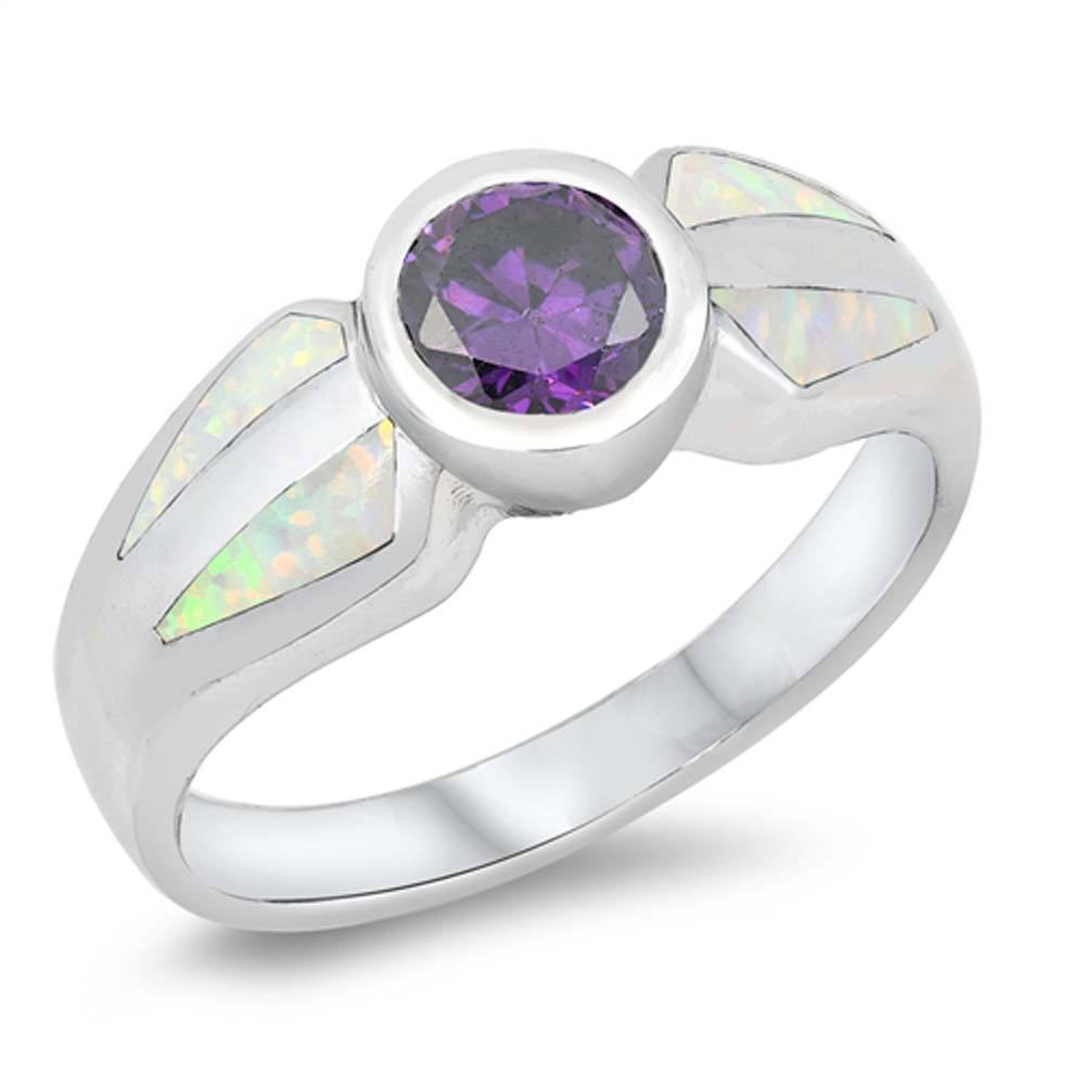 Sterling Silver Round White Lab Opal Rings With Blue Sapphire CZ StoneAnd Face Height 8mmAnd Face Width 19mm