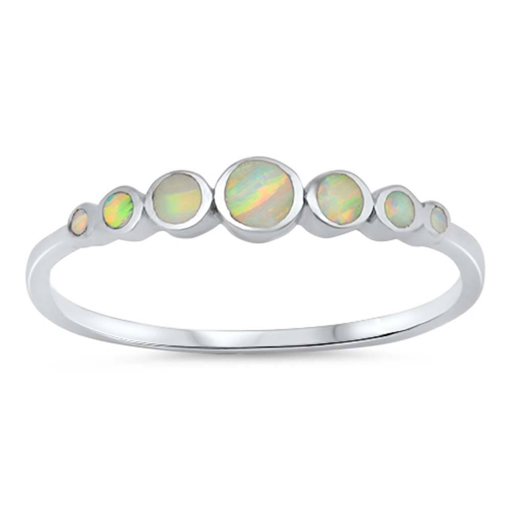 Sterling Silver Rounds White Lab Opal RingsAnd Face Height 4mm