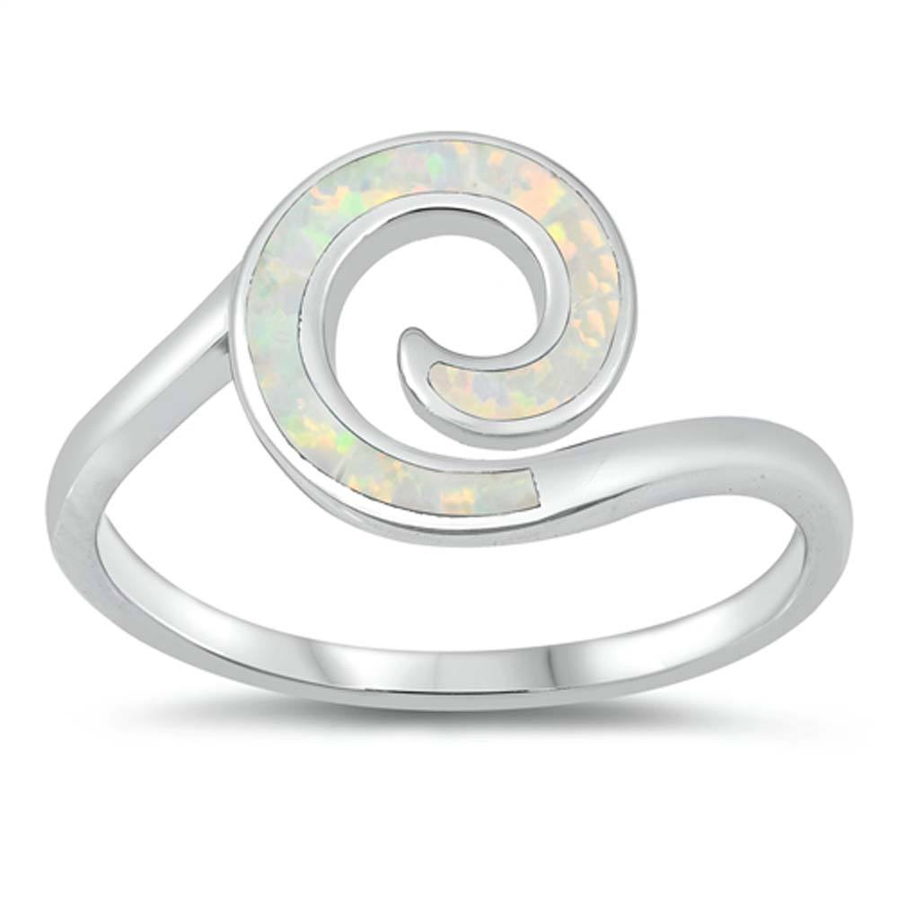 Wholesale Sterling Silver Spiral White Lab Opal Ring
