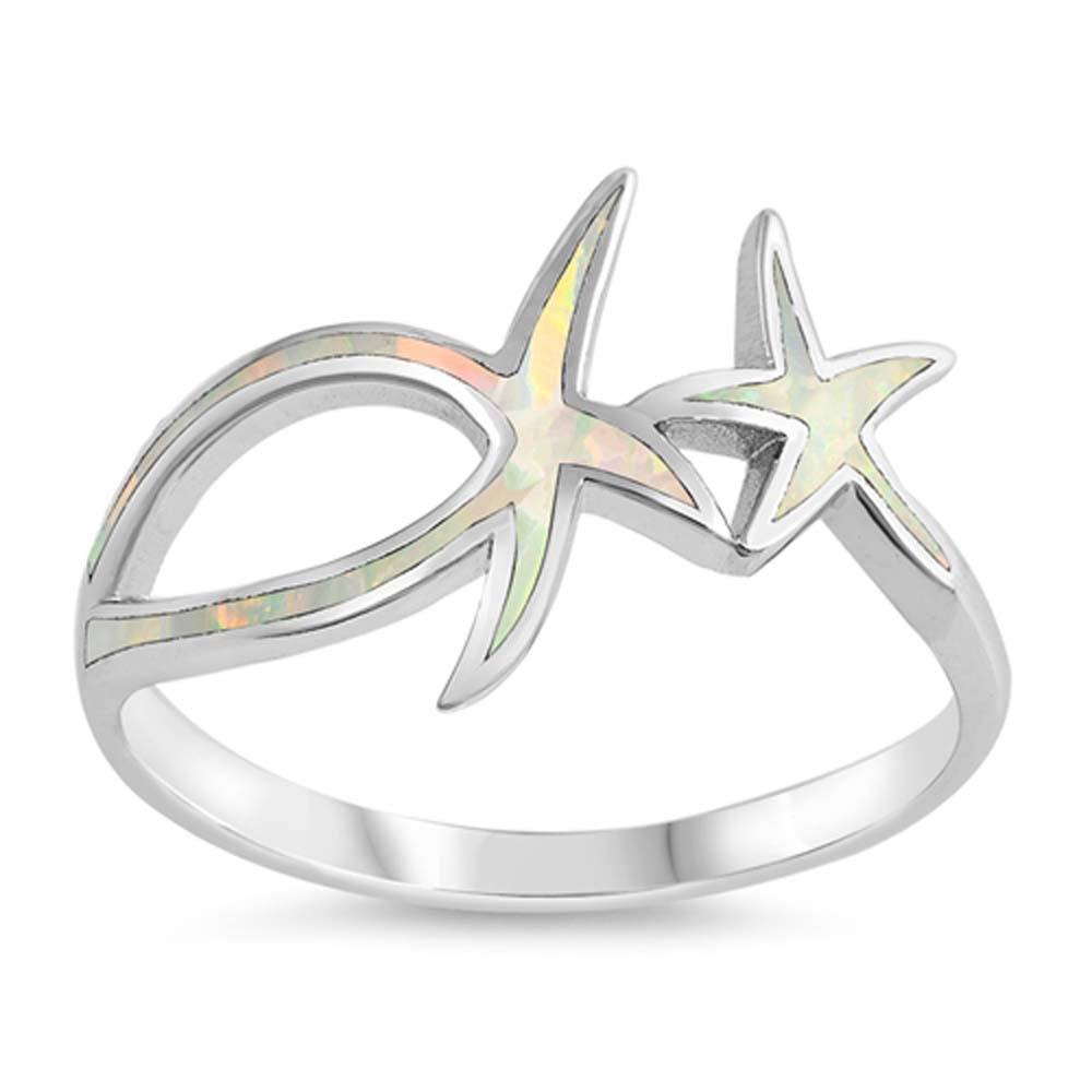 Sterling Silver Starfish Shaped White Lab Opal Ring