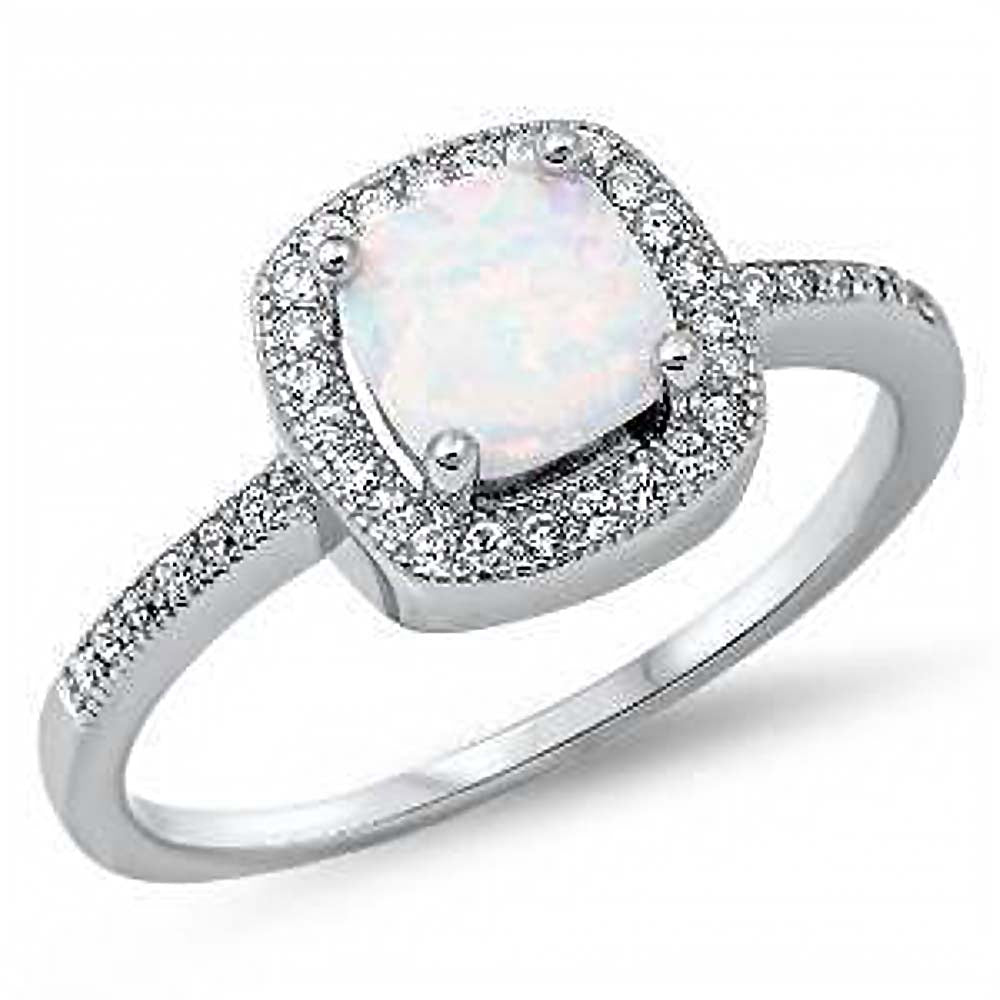Sterling Silver Sterling Silver Lab Created White Opal Ring with CZ stone