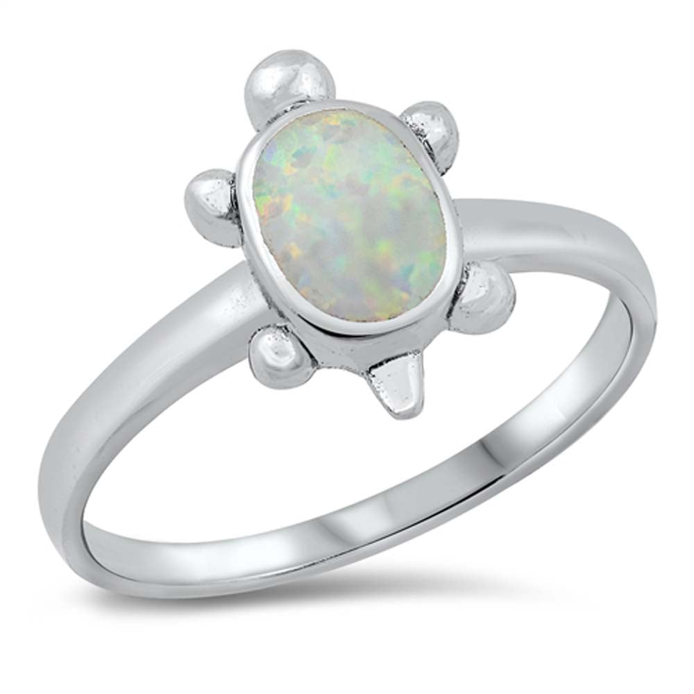 Wholesale Sterling Silver Turtle White Lab Opal Ring