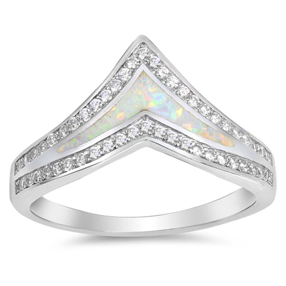 Sterling Silver Wave Shape White Lab Opal Rings With CZ StonesAnd Face Height 11mm