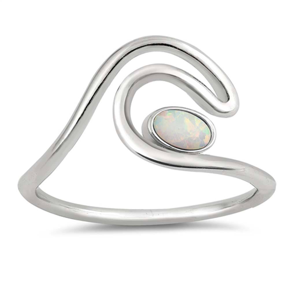 Sterling Silver Wave Shaped White Lab Opal Ring