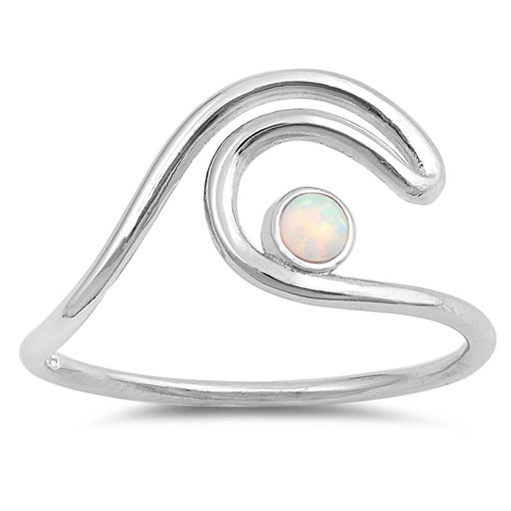 Sterling Silver Wave Shaped White Lab Opal RingsAnd Face Height 11mm